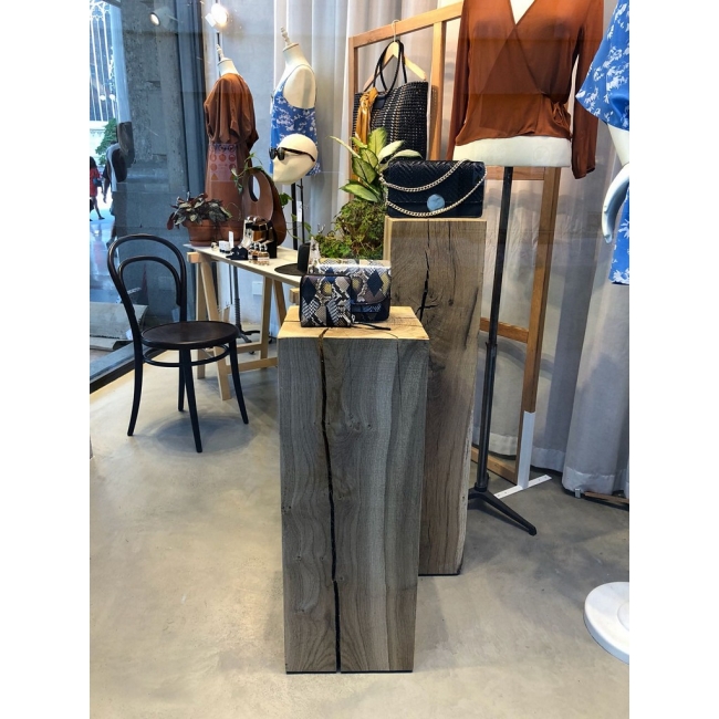 Da diese Sockel aus einem Naturprodukt hergestellt werden und jeder Stamm anders ist, ist auch jedes Resultat anders. Die Sockel werden erst gehobelt und danach geschliffen. Die Äste und Risse bleiben und geben die Sockel die stilvolle und natürliche Ausstrahlung. Perfekt um Ihr Interieur oder Ihren Garten zu dekorieren. Oder wie wäre es mit einem Modell mit Rädern als Sockel und Beistelltisch in einem?